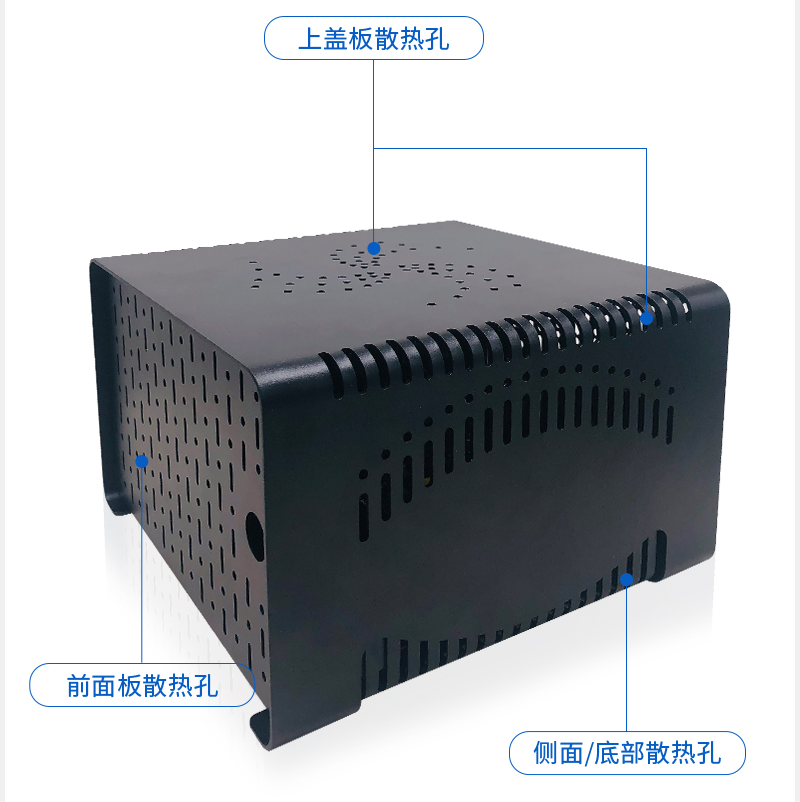 首先在我們itx機(jī)箱的基礎(chǔ)上升級(jí)而來的itx02機(jī)箱,此款機(jī)箱與之不同的點(diǎn)在于機(jī)箱的上蓋由鍍鋅板改為了鋁制。整體數(shù)據(jù)變?yōu)橄職げ捎?/span>1.0mm的鍍鋅板,上蓋為2.0mm的鋁合金、重量為1.6kg、體積202.2*217*84.7mm,維持了原產(chǎn)品的小巧精致。此外為了能夠有更好的散熱性能,ITX02對(duì)原產(chǎn)品的散熱孔進(jìn)行了更改,主要增加了孔徑和孔數(shù)。ITX02仍舊采用抽插式外殼簡便安裝,但升級(jí)了內(nèi)部襯板的安裝方式,改為卡扣式增加了內(nèi)部穩(wěn)定性的同時(shí),又方便了安裝和取出,同時(shí)布置了內(nèi)部理線孔,使得線控布局更加合理。CPU散熱方面支持高度為50mm以下的散熱器,而受制于體積的原因此款機(jī)箱并不支持獨(dú)立顯卡。