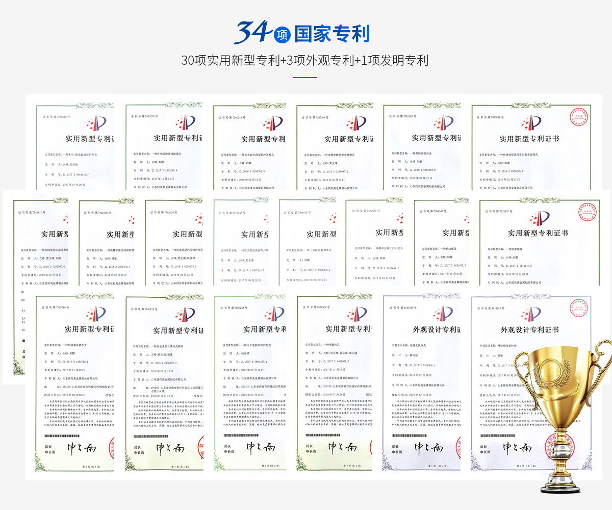 山東固而美金屬制品有限公司一直致力于為客戶(hù)提供更好的外殼解決方案,公司有專(zhuān)業(yè)的設(shè)計(jì)團(tuán)隊(duì),獲得國(guó)家專(zhuān)利共39項(xiàng),實(shí)用新型專(zhuān)利35項(xiàng),外觀專(zhuān)利3項(xiàng),發(fā)明專(zhuān)利1項(xiàng),產(chǎn)品均通過(guò)ISO9001質(zhì)量體系認(rèn)證和ISO14001環(huán)境管理體系認(rèn)證,有成熟完善的生產(chǎn)線(xiàn),作為專(zhuān)業(yè)的鈑金加工廠(chǎng),企業(yè)有三萬(wàn)件產(chǎn)品的研發(fā)經(jīng)驗(yàn)。廠(chǎng)家有專(zhuān)業(yè)技術(shù)工人,含過(guò)程檢和完檢兩道質(zhì)檢工序,全天候工程人員在線(xiàn)為您提供技術(shù)支持,選擇我們更放心!歡迎各位廠(chǎng)家、客戶(hù)來(lái)圖或來(lái)樣定制產(chǎn)品。
